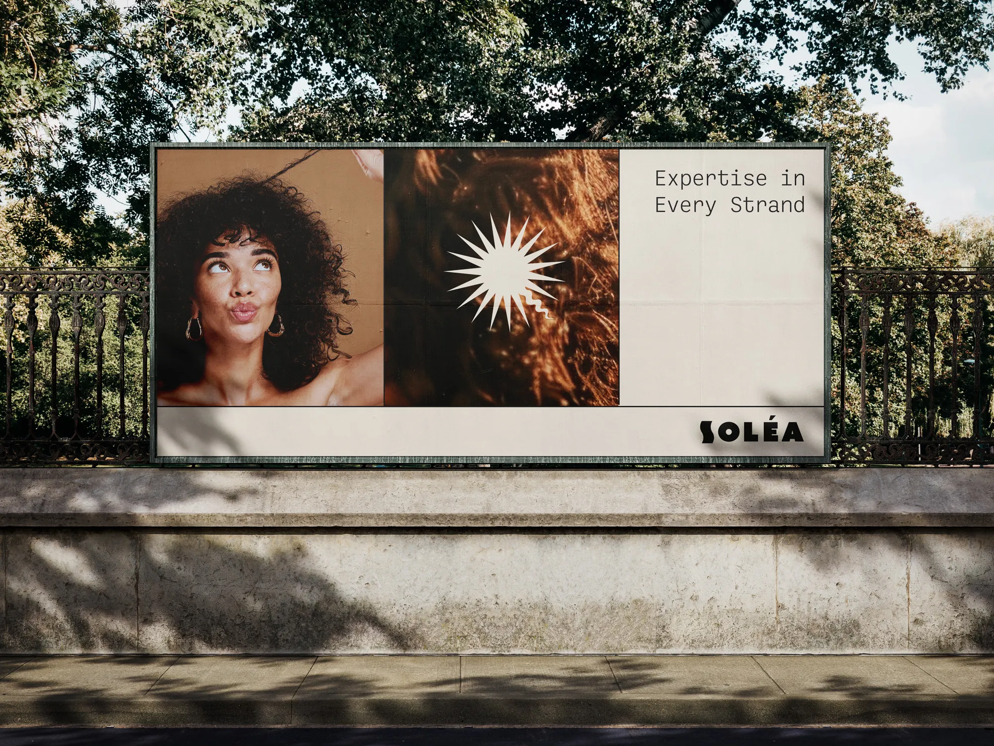 For Soléa, we created a brand identity that celebrates individuality, community, and the artistry of curls. The custom wordmark takes inspiration from the natural curve of a curl, with the “S” flowing in an elegant, organic shape. The accompanying icon blends a radiant sun, reflecting the salon’s name, which means “sun” in Spanish, with the silhouette of a curl, tying together warmth and beauty. This identity system was designed to feel welcoming and empowering, aligning with Soléa’s mission as a safe, creative space for all hair types and a vibrant, female-led community.
